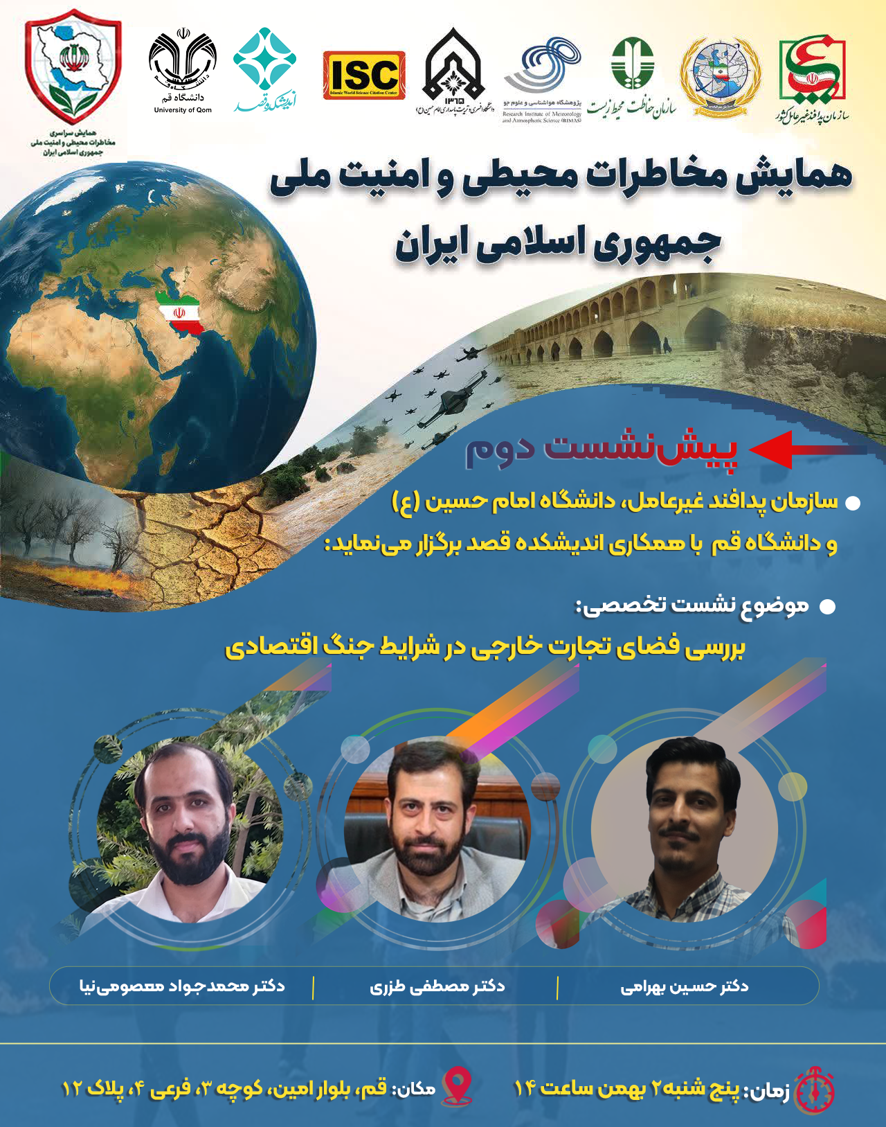 سازمان پدافند غیرعامل، با همکاری دانشگاه امام حسین علیه السلام، مرکز تحقیقات مجلس شورای اسلامی، دانشگاه قم، دانشگاه تهران، حوزه علمیه قم و اندیشکده قصد برگزار می کند:
